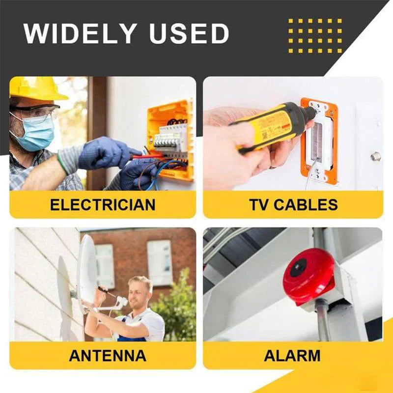 - Make single gang or double gang rectangular holes in drywall for wall boxes such as high and low voltage tech, electrician, telephone, alarm/ security, CCTV/ IP camera, antenna, automation, home-theater including CEDIA members, HAVC, drywall contractor/ installer, etc.
